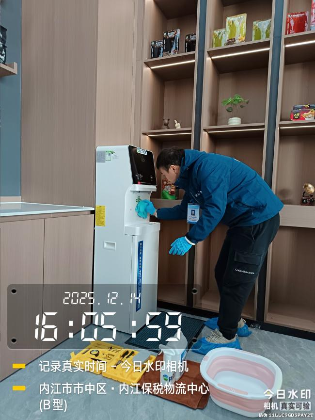 服務(wù)過程中,工作人員嚴(yán)格遵循標(biāo)準(zhǔn)化流程,安全拆卸舊濾芯并規(guī)范安裝新濾芯,確保設(shè)備運(yùn)行穩(wěn)定。隨后,對(duì)新濾芯外殼及直飲機(jī)機(jī)身、按鍵、出水口等高頻接觸部位進(jìn)行全面清潔與消毒,杜絕二次污染,筑牢衛(wèi)生安全防線。此外,工作人員主動(dòng)與用戶進(jìn)行面對(duì)面交流,詳細(xì)介紹日常使用規(guī)范與注意事項(xiàng),收集用水需求并耐心解答水質(zhì)與設(shè)備使用相關(guān)問題,從而實(shí)現(xiàn)服務(wù)閉環(huán)。